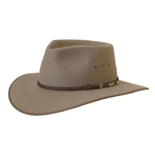 The Cattleman is the traditional Australia stockman hat and is Australia’s favourite Akubra. Features a pinch crown and broad dipping brim with eyelet vents.