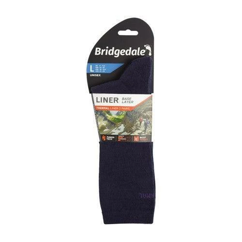 Moisture wicking fibres knit against the skin trap warm air, keeping feet warm and dry. Recommended to be worn under other Bridgedale socks in extreme conditions.Unisex and comes in a pack of 2.
