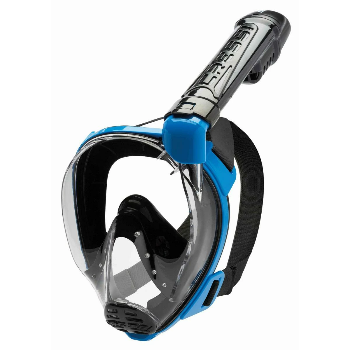 With the Cressi Baron Full Face Mask you can explore the world underwater, breathing naturally through the nose and mouth with 0% effort. Its visual field is 30% larger than normal full face masks. The new air baffle completely eliminates fogging. The Baron features special safety valves for purging water and the snorkel features a special dry system that keeps water out.