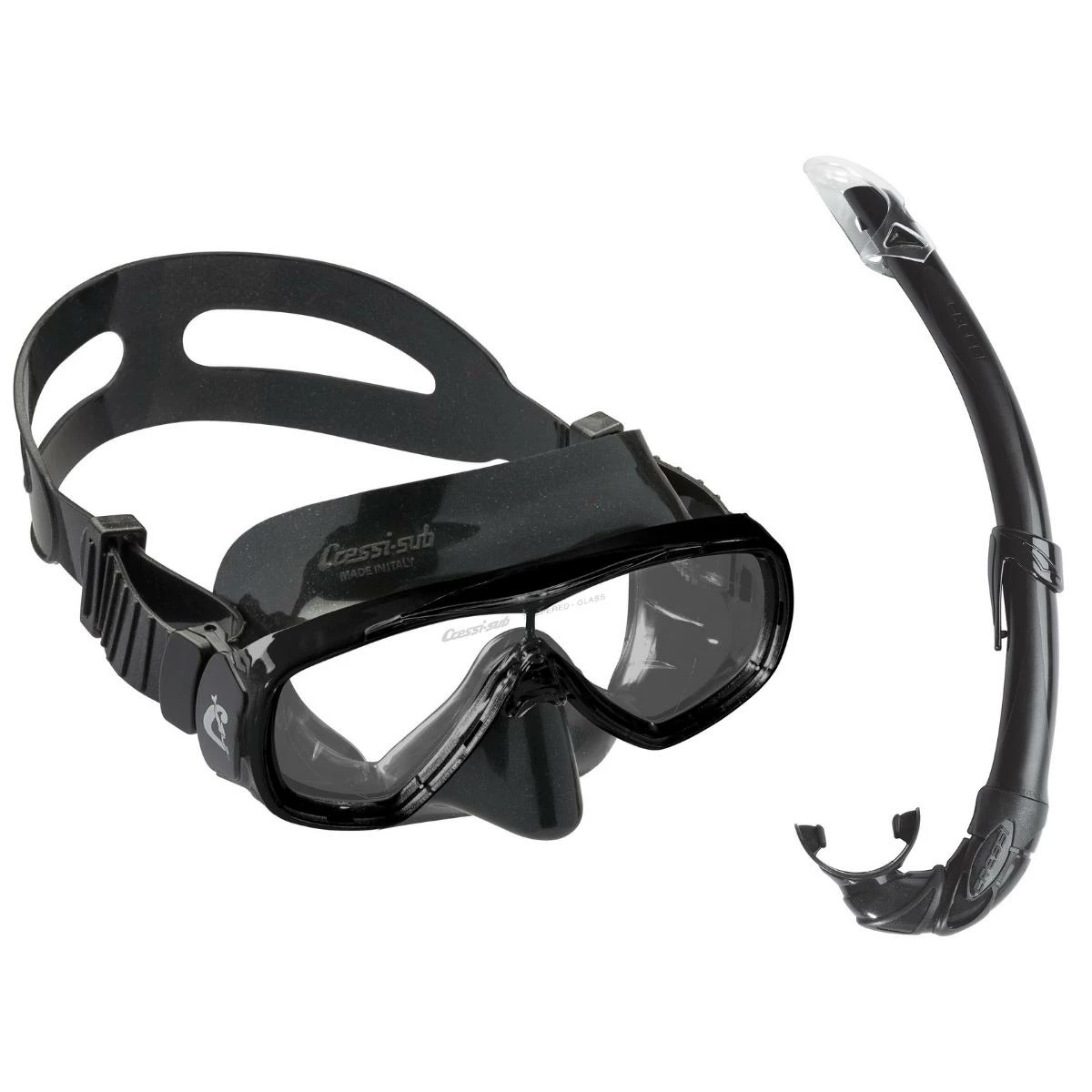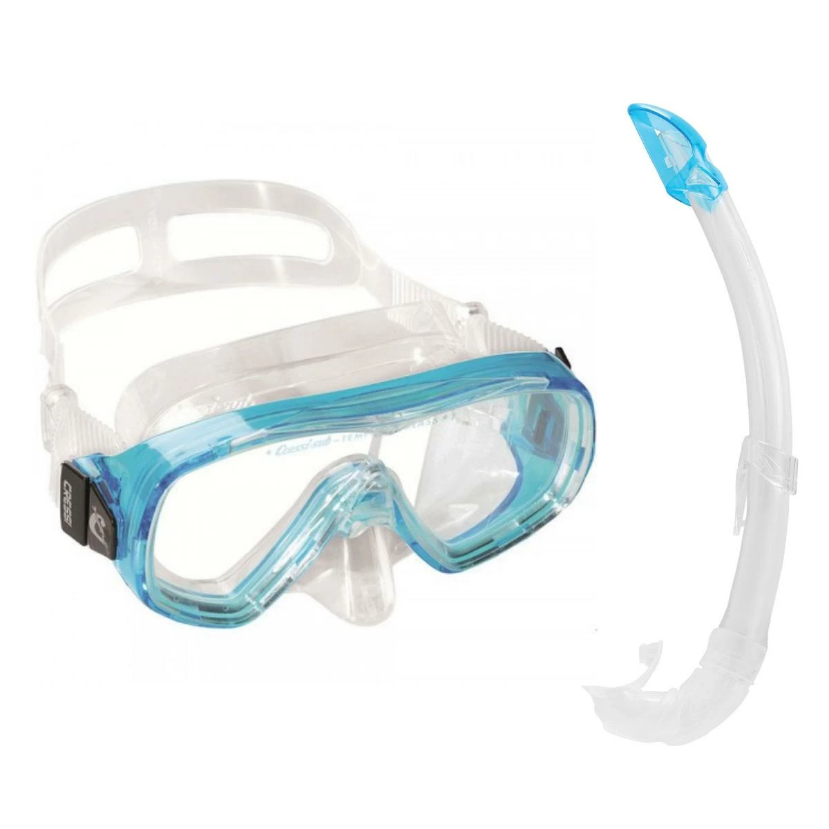 The Cressi Onda Mexico Mask Snorkel Set features an Onda mask and Mexico snorkel. The Onda mask has a single tempered glass lens and is designed for snorkeling, swimming and scuba diving. The skirt is made from soft hypoallergenic transparent silicone.