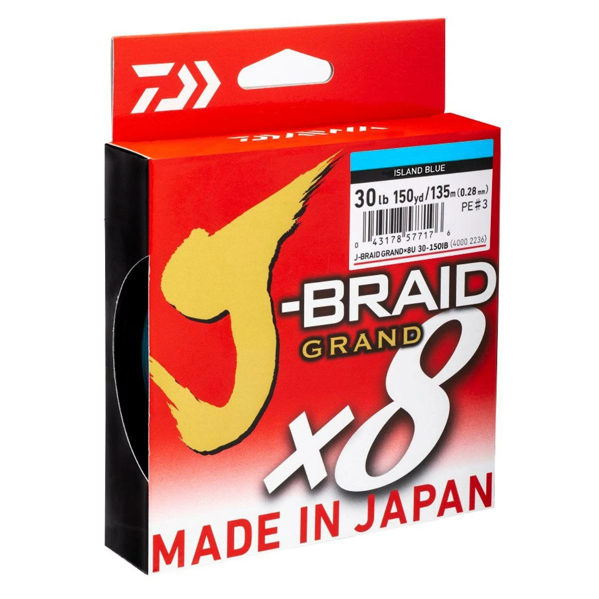 Made in Japan and available in sizes ranging from 6lb (0.6PE) to 120lb (PE16) in high-visibility island blue & depth-marked multicolour. J-Braid Grand is the smoothest and best performing J-Braid Daiwa has ever made.