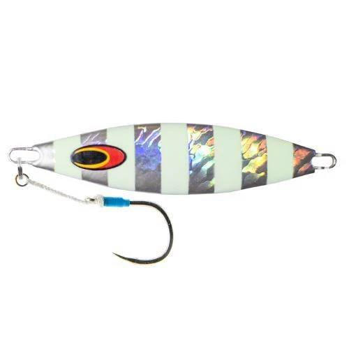 The Buffalo Flash Fall Jig from Nomad Design is a weighted jig designed to target demersal species. Using a long rod stroke with a flick at the end, you get more flash per fall. The flash fall attraction entices more predators to this light show. The strike zone is bigger and longer in a variety of situations.