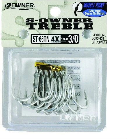 4X strong, the Owner Trebles are the toughest saltwater treble hooks on the market. The ST66 is considered an automatic upgrade for virtually any factory rigged saltwater lure. Features include a short shank, three super sharp “power points,” and a corrosion-resistant vacuum-tinned finish.
