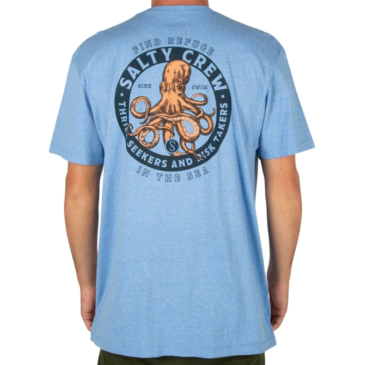 The Deep Reach S/S T-Shirt by Salty Crew is a men’s short sleeve t-shirt featuring screen printed front and back. Made from 100% 22 singles carded ring spun cotton. Available in sizes small to 2XL.
