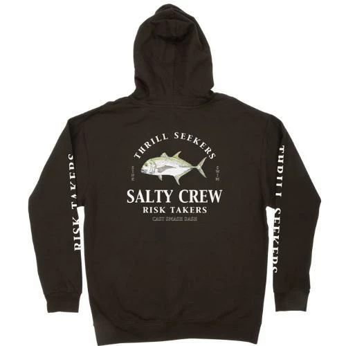The Salty Crew GT Fleece Hoodie is a men’s mid-weight hoodie with chest and back Giant Trevally Fish graphic. This style also features kangaroo pocket, draw cord hood and screen printed sleeves. Made from 80% cotton and 20% polyester.