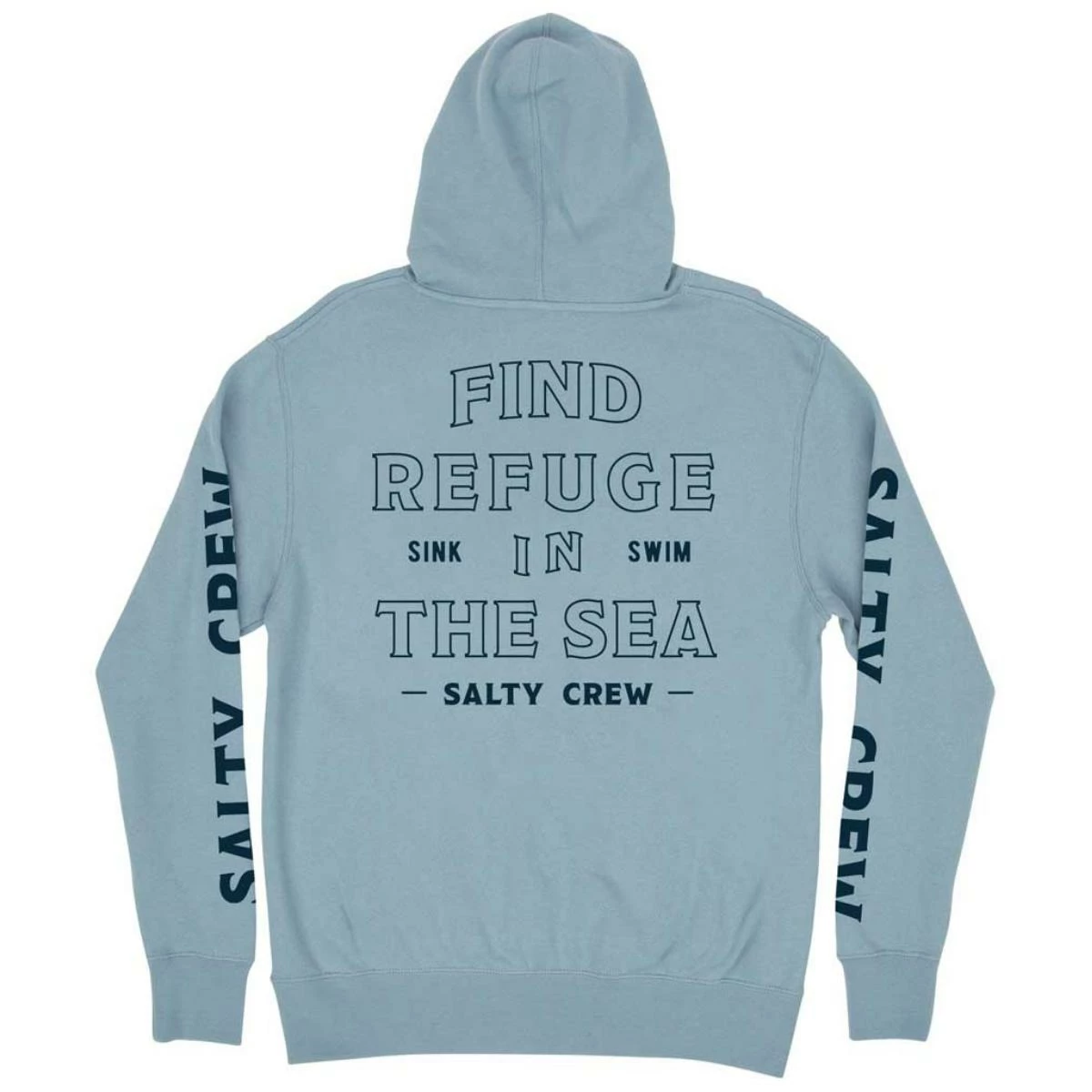 The Salty Crew Refuge Overdye Fleece features kangaroo pocket with drawcord hood.
