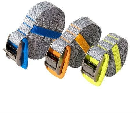 An all purpose tie down featuring die cast nickel plated zinc alloy buckles with a rubber protector pad. The webbing has been upgraded to 25mm UV protected polyester webbing. A handy, colour-coordinated elasticised webbing retainer keeps the tie downs neatly coiled when not in use.