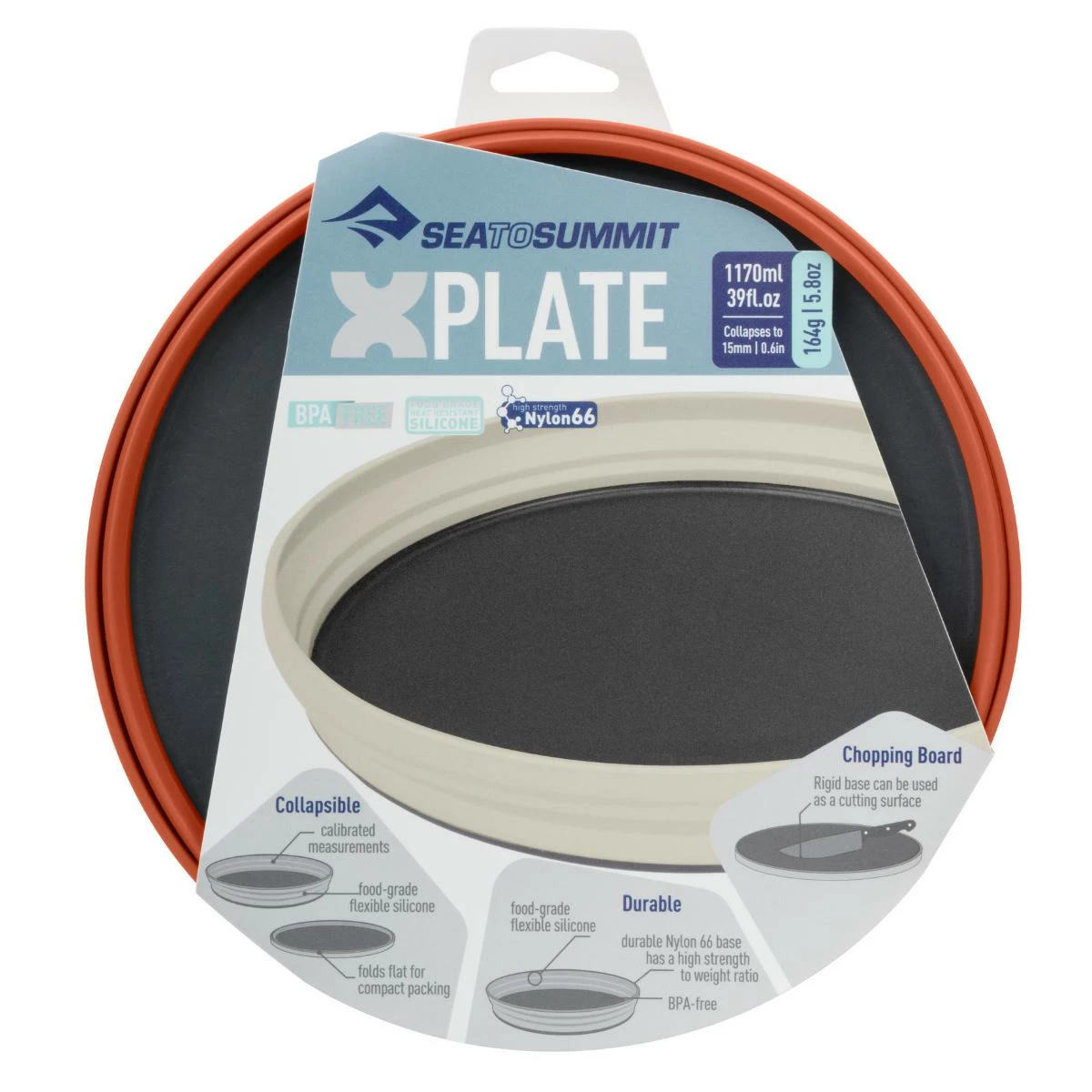 The Sea To Summit X-Plate is constructed from a flexible European standard compliant, food grade, silicone upper that is securely bonded by a patent pending process to a rigid, cut resistant base made of high temperature, food grade Nylon. It folds flat for compact packing.