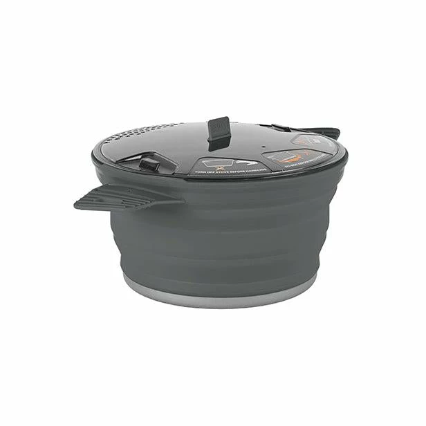 - Ribbed silicone handles secure the X-Pot lid during transport