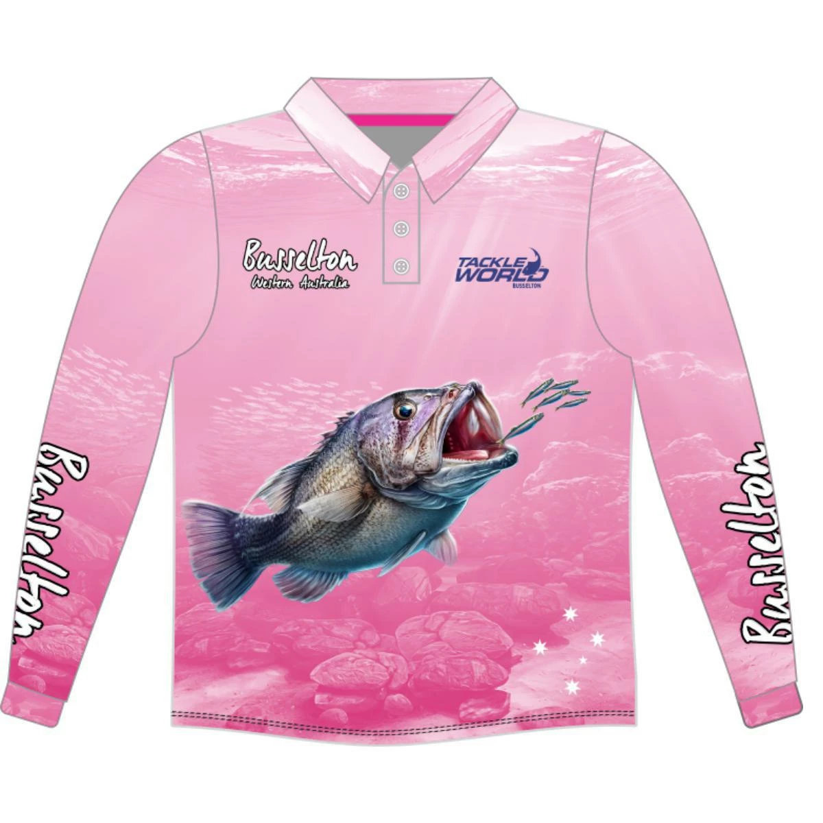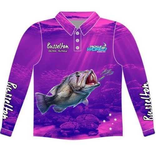 Our very own Tackle World Busselton subliminated fishing shirt for the ladies with the West Australian Dhufish embossed across the front and back of the shirt. Shirts are UPF50+ and available in womens sizes 6 to 18.