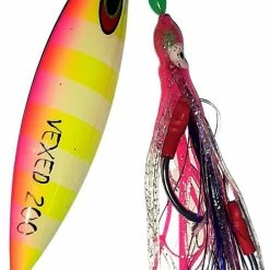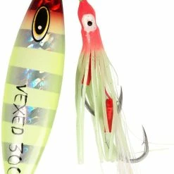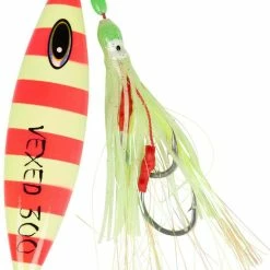 The Vexed Dhu Drop has been specifically designed to be fished slow and deep with the assistance of a rubber occy assist hook. This greatly improves visibility and achieve more solid internal jaw hook ups, as most fish will bite the occy head assist, which is rigged with 2 super sharp Harbor pike hooks.
