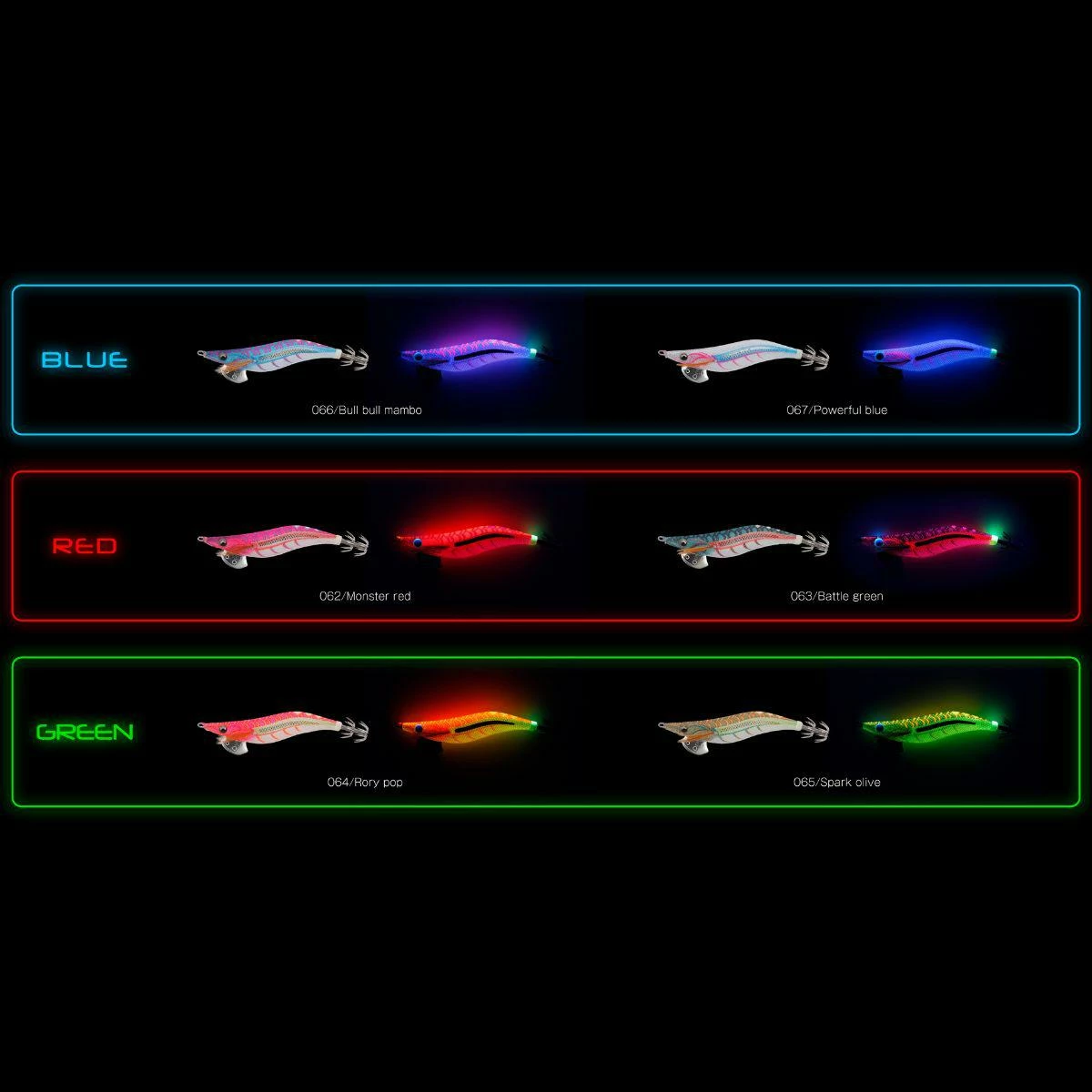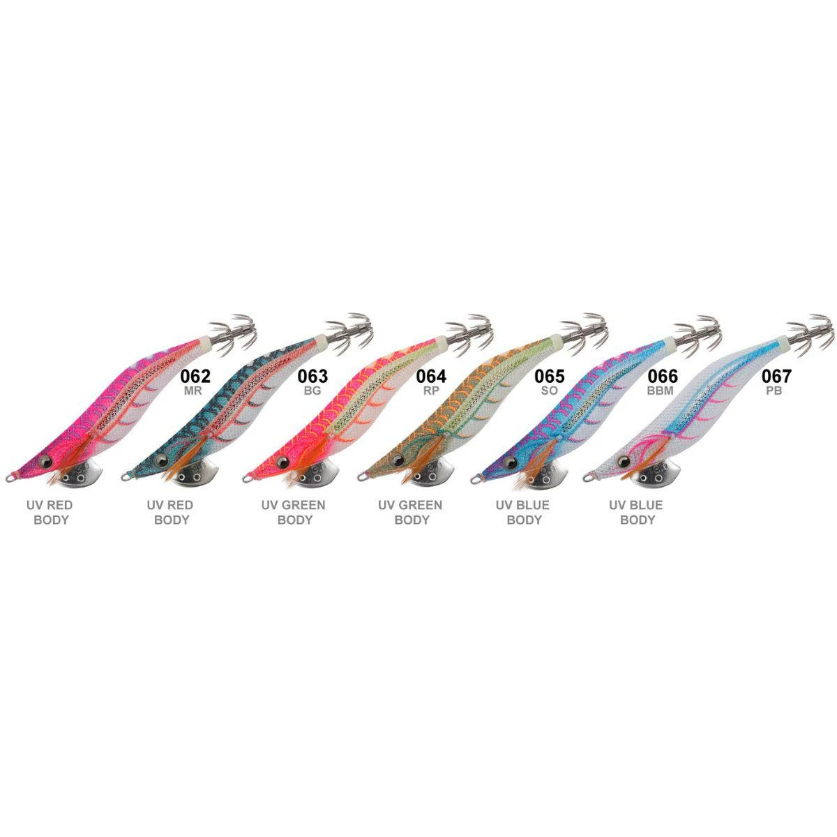 Neon Bright is an exclusive new UV reaction technology from Yamashita which reacts UV Blue, UV Red or UV Green. Introducing the Yamashita EGI OH Neon Bright Live Squid Jig with a great selection of UV colours.